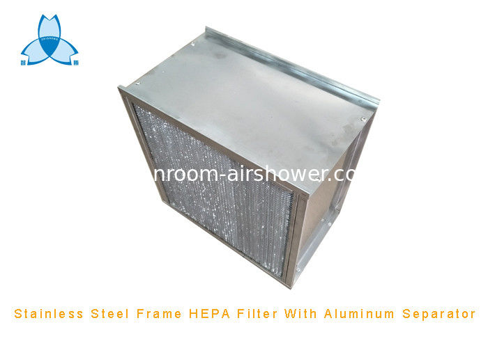 耐高温350度不锈钢框铝隔板高效过滤器595x595x292mm,带法兰